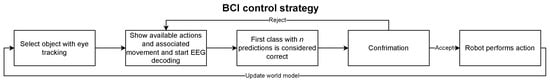 - Xu, B.; Li, W.; Liu, D.; Zhang, K.; Miao, M.; Xu, G.; Song, A. Continuous Hybrid BCI Control for Robotic Arm Using Noninvasive Electroencephalogram, Computer Vision, and Eye Tracking. Mathematics 2022, 10, 618. [Google Scholar] [CrossRef]