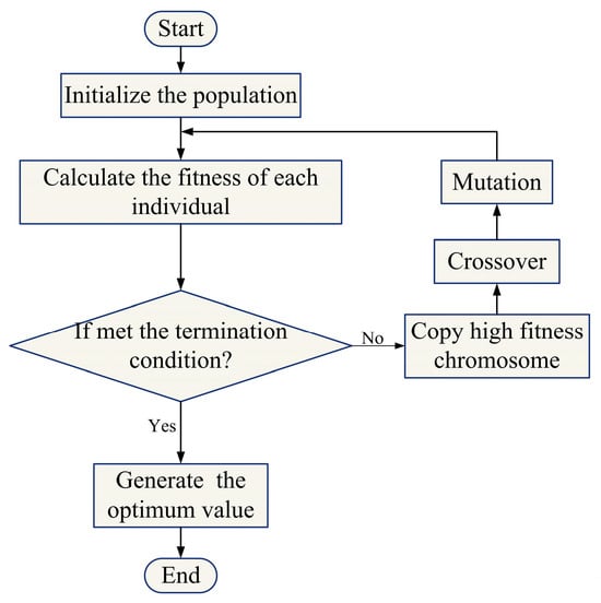 Genetic algorithms (GAs) are computational models inspired by natural evolutionary systems, proposed in the 1870s by John Henry. As a type of bio-inspired algorithm, their primary objective is to optimize complex parameter selection tasks [30]. These models employ theories of biological evolution and Darwin’s survival of the fittest. The algorithm starts by initializing the population, setting its scale, and generating an initial population. Subsequently, continuous selection, crossover, and mutation processes evolve the population, forming new generations.