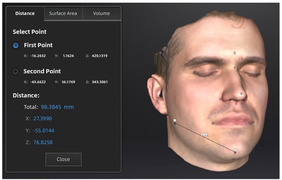 Scanning took place under natural ambient light. Post-processing of the scanned data and indirect measurements on the facial scans were all done using the scanner’s proprietary ExStar software (v1.2) provided by the manufacturer. During scanning, the scanner needs to be connected to a PC using MS Windows. The recommended hardware settings are: OS: Win 10/11, 64 bit; graphics card: NVIDIA GTX1060; video memory: ≥6 GB; processor: I7-11800H; memory: ≥32 GB (Figure 3).
