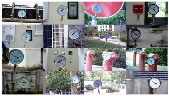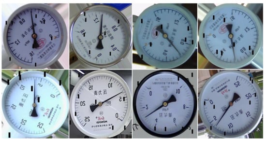 - Zhang, L.; Fang, B.; Zhao, X.; Zhang, H.S. Pointer-type meter automatic reading from complex environment based on visual saliency. In Proceedings of the 2016 International Conference on Wavelet Analysis and Pattern Recognition (ICWAPR), Jeju Island, Republic of Korea, 10–13 July 2016; IEEE: Piscataway, NJ, USA, 2016; pp. 264–269. [Google Scholar]
