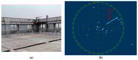 The radar operates in the C-band frequency range in the experimental data, with the clutter being primarily caused by car echoes from a nearby highway (as shown in Figure 8b). The actual radar data acquisition environment and radar beam pattern are shown in Figure 8a,b.