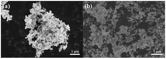 SEM images of (a) ZnO/In2O3 and (b) 2 mol% Rb-ZnO/In2O3.