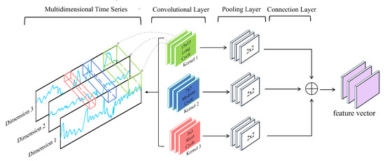 To address the issue that fixed convolutional kernels can only capture features of a specific scale, we propose a multi-scale convolutional kernel to extract highly expressive latent features of different time scales from the dataset. We construct a convolutional layer with three parallel paths, each with different kernel sizes, and each convolutional layer uses the multi-channel convolution method described earlier.