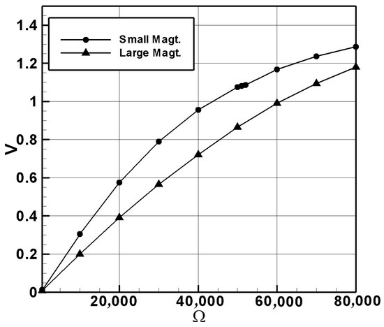Comparison of RMS voltage and power between large- and small-magnet systems.