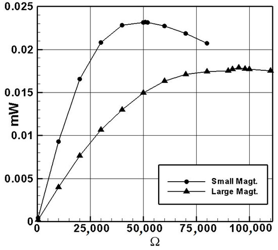 - Measuring the internal resistance of the system reveals that the small-magnet system achieves the maximum power output when connected in series with a 50.45 K ohm resistor and the large-magnet system with a 95 K ohm resistor. Under these conditions, the small-magnet system has a higher power output than the large-magnet system, making it more suitable for use as a high-power damper.