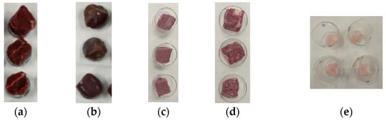(a) Muscle; (b) liver; (c) heart; (d) kidney; and (e) fat samples before the dehydration procedure.