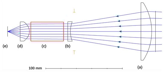 A key design criterion was to ensure that incoming light rays in the space allocated for the filter arrangement (see Figure 5c) were approximately normal to the filter surfaces. This orientation minimizes the risk of blue shift, which occurs when the center wavelength of a filter shifts toward shorter (blue) wavelengths as the angle of incidence increases, potentially impacting the fidelity of wavelength detection.