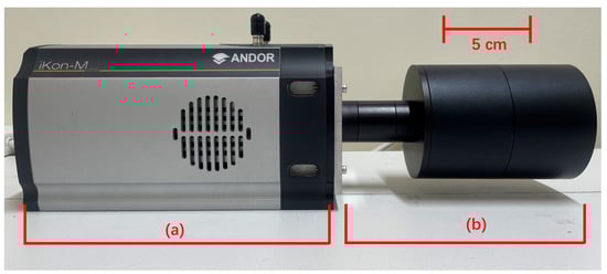 Comprehensive view of the alpha camera setup: (a) iKon 934 CCD camera (b) Integrated lens and filter system.