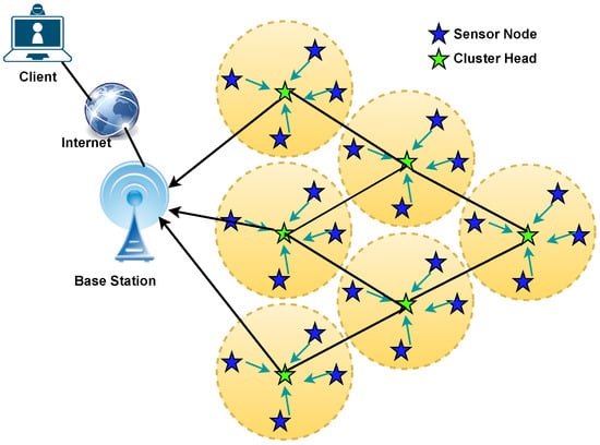 - Heinzelman, W.R.; Chandrakasan, A.; Balakrishnan, H. Energy-efficient communication protocol for wireless microsensor networks. In Proceedings of the 33rd Annual Hawaii International Conference on System Sciences, Maui, HI, USA, 7 January 2000; p. 10. [Google Scholar]