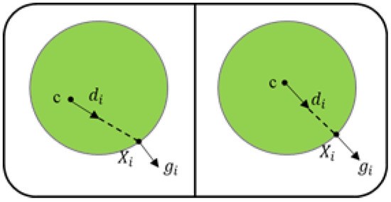 The last is the positioning of the pupil center. The pupil center is not only an input feature required by the gaze estimation model, but also plays an important role in evaluating attention. We chose the pupil center location algorithm based on the Hough transform [41,42]. This method takes advantage of the convex feature which the pupil center has and considers that the gradient vector of the pupil edge points to the opposite direction of the line connecting point and the pupil center, as shown in Figure 1.