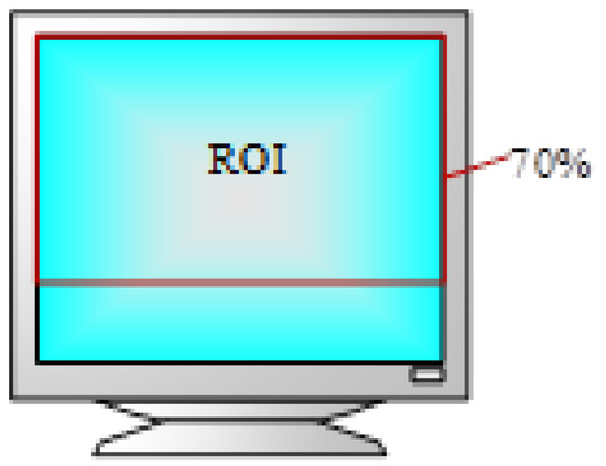 The experimental results of Owens [49] show that the attention of lecturers is mainly concentrated on the upper part of their screen, and the number of times they look down is less, so we use the top 70% of the screen as the ROI area, as shown in Figure 8. When the fixation point of the lecturer falls inside the ROI area, the fixation is considered to be effective fixation. When the fixation point falls outside the ROI area, it is considered to be invalid.
