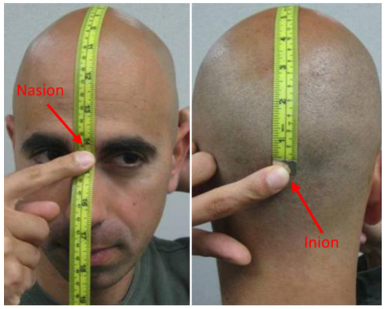 How to locate and measure the nasion, inion, and CZ positions on the head.
