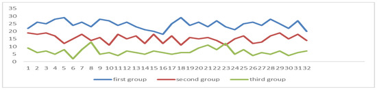 The correlation coefficient between the average of NOS and the degree of attention in the three groups was −0.017, and there was no significant relationship between the two (p = 0.01). The correlation coefficient between the variance of NOS and the degree of attention is −0.7846 (p = 0.01), there is a significant relationship between the two, and the variance of the first group is all less than 10, as can be seen in Figure 17. The average formula is as it is in (8), and the variance formula is as it is in (9).