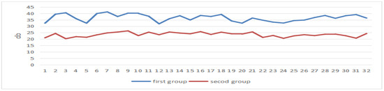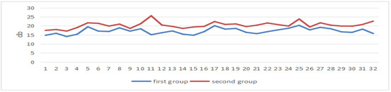 These two sets of data are the power values of the students’ brain electrical theta band and the values of the first group, which are all lower than those of the second group, see Figure 20.