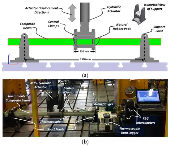 thick laminated composite beams; fiber brag grating (FBG) sensors; structural health monitoring (SHM); finite element analysis (FEA); large deflection; exothermic reaction in composites; three-point bending fatigue test; dynamic and static testing; sensor integration in materials engineering; curing and post-curing analysis; strain 1. Introduction