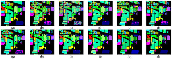 IP (a) Ground-truth. (b–l) Classification maps for different classifiers. (b) SVM. (c) 3D-CNN. (d) FPGA. (e) DFSL. (f) DFSL + SVM. (g) DFSL + NN. (h) DCFSL. (i) CMTL. (j) S3Net. (k) CRSSNet. (l) AGPS.