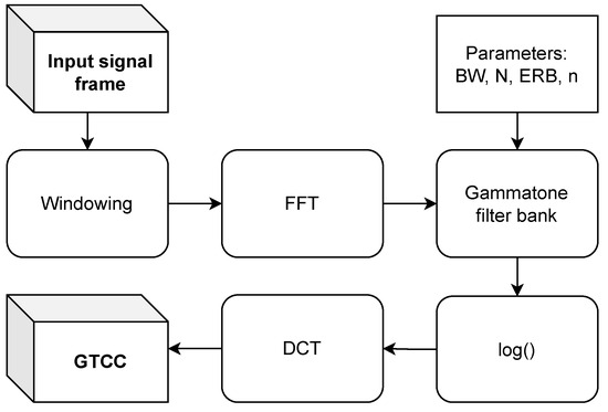 Gammatone cepstral coefficients (GTCCs) are popular features extracted from audio signals for use in recognition problems. The gammatone function models the response of the human auditory filter. The frequency selectivity properties of the cochlea and those measured psychophysically in humans appear to coincide with properly implemented gamma filters. The gammatone filter bank (composed of the frequency responses of several gammatone filters) emphasizes the perceptually meaningful sound signal frequencies.