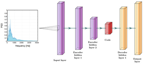 For worker bee and drone classification, we propose using an autoencoder. It is a type of generative artificial neural network [41] that can learn the features of the input signals through the training process, during which the model adjusts its parameters to minimize the difference between the input signals and their reconstructions. As the autoencoder minimizes the reconstruction error, it learns to map the input signals to a lower-dimensional representation that captures the essential features of the data. Its weights are adjusted to extract meaningful patterns and structures from the input signals.