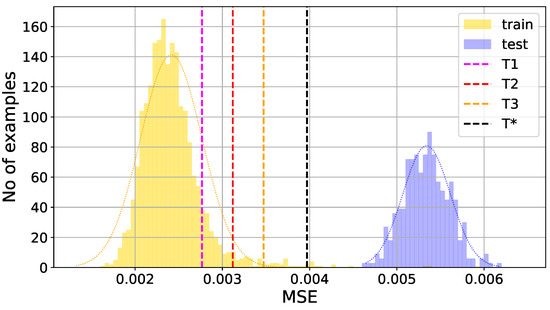 The classification result depends on the choice of the reconstruction error threshold, dividing the decision areas for the two classes, which is discussed in the next Section 3.