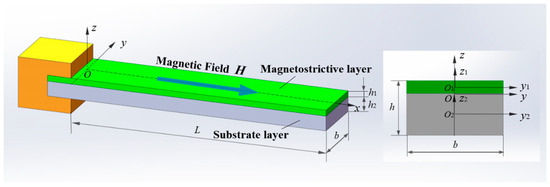 16] applied the nonlinear constitutive relation of magnetostrictive materials to obtain the vibration differential equation of a double-layer cantilever beam using Hamilton's principle and analyzed frequency-doubling dynamic characteristics of the amplitude–frequency curve and deflection response under periodic magnetic field excitation. At present, the theoretical research of magnetostrictive resonator model building is almost entirely based on classical beam or plate theory, but the mathematical model building of micro-devices rarely considers or ignores the influence of microscale on the structural vibration characteristics.