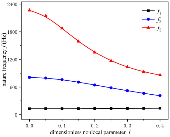 l is 0.1, 0.2 and 0.3. It can be seen that for the same-order mode, the larger the nonlocal parameter