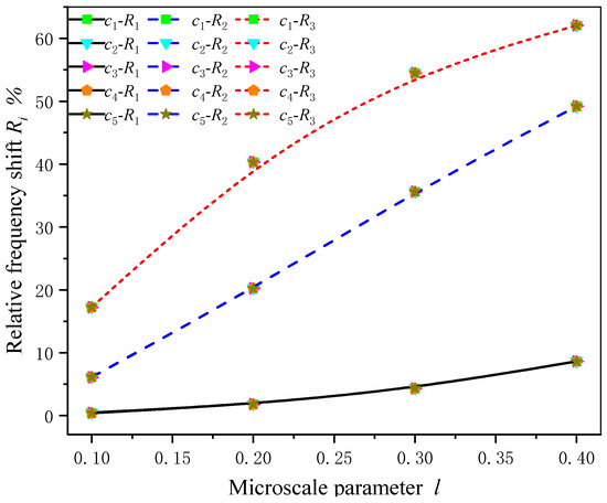Figure 6 show the first three natural frequency difference and relative frequency shift curves of the composite beam with different transverse dimensions as a function of nonlocal parameters. With the decrease in the interlayer thickness ratio and the increase in the microscale parameters, the frequency difference