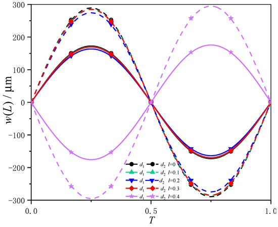 l = 0, 0.1, 0.2. It can be seen that, when the magnetostrictive layer is thicker (the larger