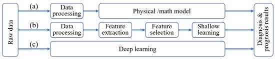 Modeling methods in PHM: (a) mathematical and physical models, (b) shallow learning, (c) deep learning.