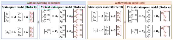 This study’s theoretical foundation is based on the concept of virtual states and the virtual state-space model for generating multi-order data and exploring system dynamic characteristics from multiple dimensions [22]. The structural and compositional expressions of the virtual state-space align with the general state-space formulation, as illustrated in Equations (11) and (12):