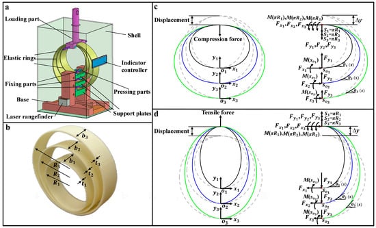 Diagram for (a) FS and (b) flexible rings. Diagrams of three rings subjected to (c) the Fcompression and (d) Ftensile.