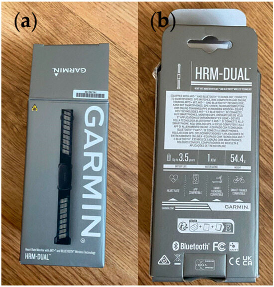- A Garmin HRM dual-band (Garmin, Schaffhausen, Switzerland), which is a heart rate monitoring strap. This product was purchased from Amazon. This gave an example of an E-textile where a key component, here the electrodes, was created through the weaving of conductive elements (Figure 1c).