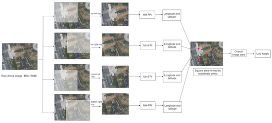 Height calculation process.Taking the four vertices of the original drone image as the starting point, four images of 3000 × 3000 size were intercepted.