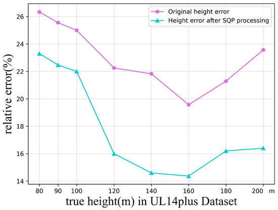 After SQP optimization, while maintaining the accuracy of each predicted point, the irregular shape in the second image from the left in Figure 14 was dynamically adjusted to the ideal square shape we envisioned. Figure 15 below shows the relative errors of the original height calculation and the height after SQP processing.