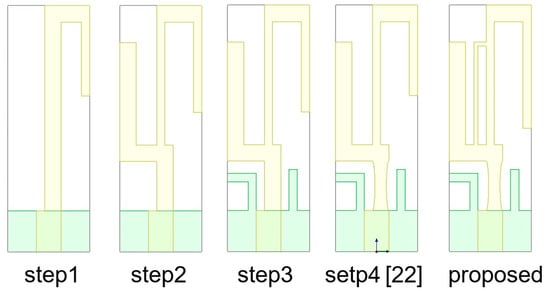 The evolutionary steps of the compact multiband monopole antenna structure.