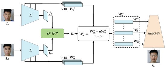 Considering that both landmark-based and deep learning-based morphing generation methods use linear interpolation of contributors’ identity information based on morphing factors to construct morphed facial identities, identity restoration can be achieved by obtaining the de-morphing factor corresponding to the morphed facial image and performing inverse linear interpolation. Therefore, this paper proposes a feature interaction-based de-morphing factor prediction network, which leverages cross-attention mechanisms to integrate the correlation between morphed facial images and images captured by FRSs to facilitate de-morphing factor learning. Additionally, StyleGAN inversion [38,39] can map real facial images into latent space, enabling high-quality facial image reconstruction and allowing for facial editing through latent feature manipulation. Thus, this paper maps facial images into the StyleGAN latent space and utilizes de-morphing factors for inverse linear interpolation to restore the latent features of accomplices, thereby achieving face de-morphing.