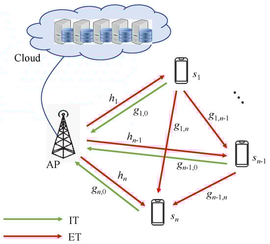 Therefore, with the channel gain coefficient , the additional energy shared from and obtained by is denoted as , which can be expressed as Equation (7).
