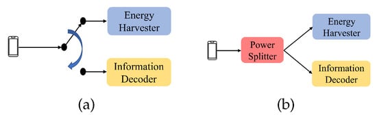 Different types of the SWIPT technology. (a) Time Switching. (b) Power Splitting.