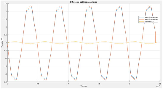 Figure 11. Test results give a good response of the avoiding signal between both coils. Only a little 180° dephased signal was measured, which ensures the cancelation of the signals.