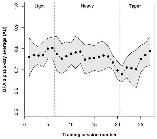 - Bellenger, C.R.; Arnold, J.B.; Buckley, J.D.; Thewlis, D.; Fuller, J.T. Detrended fluctuation analysis detects altered coordination of running gait in athletes following a heavy period of training. J. Sci. Med. Sport 2019, 22, 294–299. [Google Scholar] [CrossRef]