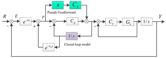 In order to further improve the tracking performance of the system, the modified Smith predictor by pseudo feedforward control is proposed, which is exhibited as Figure 4. Firstly, the improved Smith predictor is based on a closed-loop model which will be less affected by parameter perturbations compared to an open-loop model. The added pseudo feedforward link is used to improve the transmission characteristics of the system for better tracking performance when feedback performance is limited and the model is available.