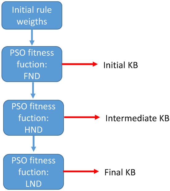 Thus, to obtain the three different KBs, the weights of the rules are optimized following the process depicted in Figure 4.