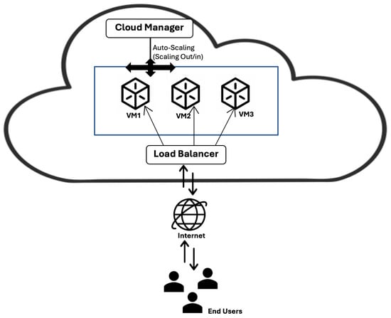 Figure 1 the architecture of cloud computing consists of various components. The aim is to deliver top-notch cloud services at minimal costs while ensuring prompt response to requests and system stability. Scalability, a pivotal characteristic of cloud computing, addresses this challenge by enabling flexibility and efficiency for users. To clarify the meaning of auto-scaling, auto-scaling refers to the ability to scale in and out by adding or removing resources depending on the requirements [