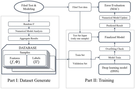 In recent years, there has been a rapid increase in the number of publications focusing on deep learning-based methods for model updating, showcasing the potential of deep learning in the domain of model updating. Lee et al. [28] have presented a novel methodology for structural damage detection, which leverages finite element model updating to establish a reference model that encapsulates the target structure’s characteristics. This approach addresses the limitations of traditional simulation-based damage detection by incorporating measured responses and employing DNN to identify the extent and location of structural damage. Utilizing an inverse eigenvalue problem approach and DNN, Gong and Park [29] innovatively updated finite element models with high accuracy, as evidenced by the dynamic updating of a suspension bridge model.