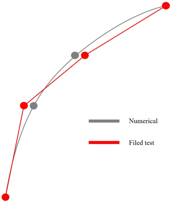 The fitting objective should also be considered. The mode shapes calculated from the finite element model are guaranteed to be smooth curves, while the measured data often have obvious non-smooth points due to errors, as shown in Figure 1 and Figure 2. Assume that when previously generated, the set of all possible parameters is , and the set of all possible output mode shapes is . The inverse process that needs to be fitted clearly satisfies: