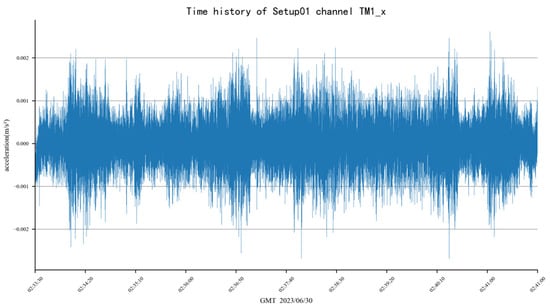 Prior to testing, the four instruments were placed together for a preliminary 20-min test to ensure their timing accuracy. Each subsequent array was then tested for 25 min. Throughout the testing process, the north direction on each instrument consistently pointed in the same direction, perpendicular to the building axis. For data processing, the north and east directions of each instrument were converted to x and y directions to align with the model. This test was completed on 1 September 2023.