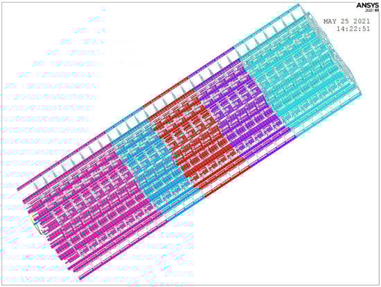 Upon completion of the modeling (as shown in Figure 8), the modal analysis was performed using the subspace iteration method in ANSYS. The frequency range was set from 0.01 Hz to 20 Hz, and the damping ratio was 0.05.