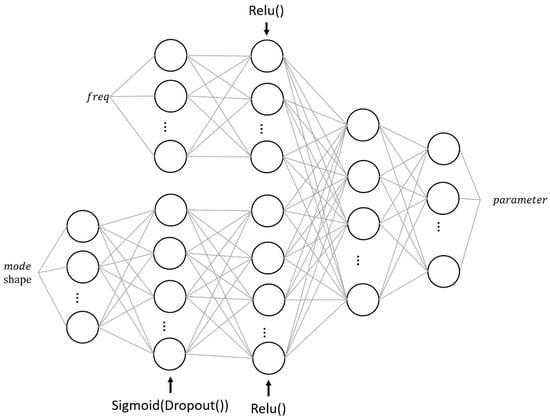 Drawing upon previous discussions, the primary aim of the neural network construction in this research is to model the inverse function of calculations performed during modal analysis using finite element software. It is crucial that the network demonstrates a certain level of generalization ability to avoid overfitting. The final structure of the neural network used is shown in Figure 10.