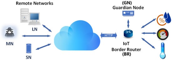 Figure 1 conceptualises the IoT network topography, with the functional relationship between the BR and GN illustrated. The primary role of the BR is forwarding all inbound packets whenever two key criteria are upheld: (i) when the IP address and TCP port number already exist in the BR forwarding table, and (ii) the sender IP address fails to meet the conditional Deny statement in the Access Control List (ACL). The GN, which is a lightweight IoT node, only examines inbound packets that fulfil a specified lp value and evaluates.
