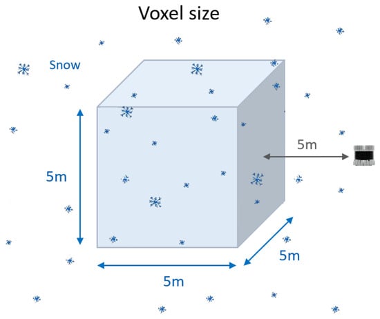Voxel size for extracting snow points. Snow particle extraction was performed on a single 5 × 5 × 5 m voxel.