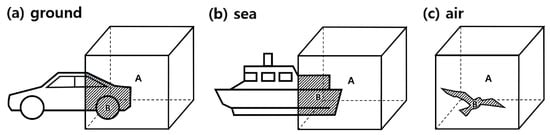 However, as shown in Figure 5, for vehicles driving on the ground, there is a high possibility that an object will exist within the voxel area, and although it is less likely than on the ground, for drones or ships traveling in the air and at sea, objects such as other ships or birds may also exist within the voxel area. In this case, as shown in Equation (3), the normalized value can be obtained by measuring the number of snow points present in area () and then dividing it by the volume of (). Here, the variables , , and represent the number of snow points acquired from the volume excluding object B from voxel A (5 × 5 × 5 m), the snow volume excluding object B from voxel A, and the values normalized to a 1 × 1 × 1 m volume, respectively. To put it simply, it means that the number of snow in the voxel area is divided by the voxel volume for the area where the snow is detected and finally calculates the number of normalized snow for a volume of 1 × 1 × 1 m.